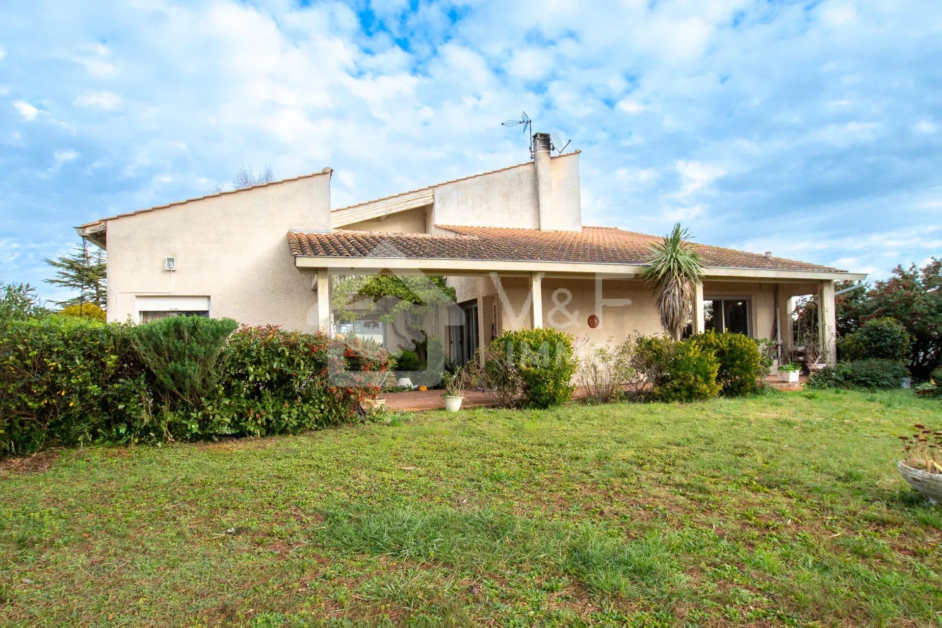 Lauzerville – Maison d'architecte de 191 m² avec studio indépendant, superbe vue Pyrénées, double garage, sous-sol , sur un terrain arboré de 1 837 m².